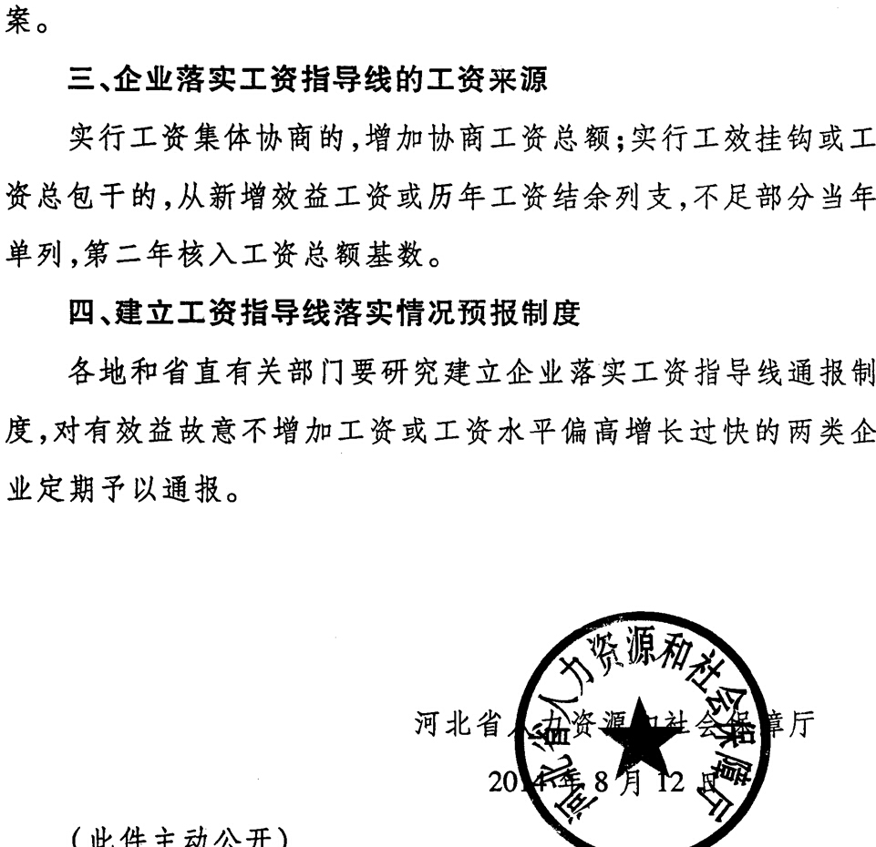 河北省人力资源和社会保障厅关于发布河北省2014年企业工资指导线的通知(冀人社发[2014]30号)