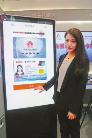 展览现场,人社部还签发了首张全国统一的电子社保卡,申报的异地就医全国“一卡通”案例被评为数字中国建设年度最佳实践。(记者余列江文并摄 ①峰会展馆外景。②人社部信息中心负责人等与来自青岛的刘女士合影,共同见证全国首张电子社保卡签发。③刘女士在触屏上确认领取首张电子社保卡。④智慧人社展馆。①②③④图片说明)