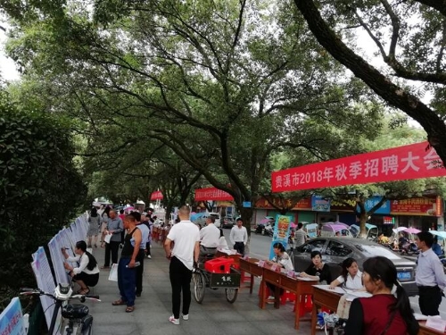 9月13日上午,贵溪市2018年大学生就业服务月暨秋季招聘会在该市桥西公园举行,共有53家企事业单位提供就业岗位1106个,其中适合大学生就业岗位243个。