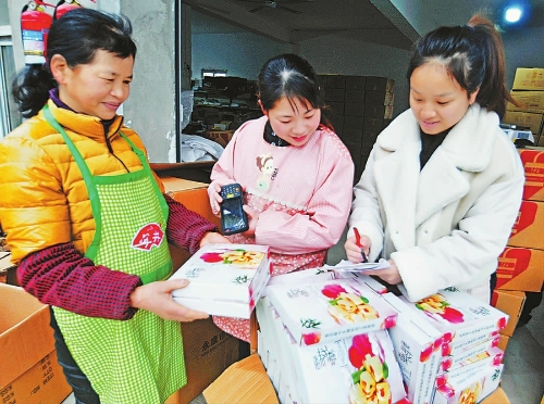 近年来,安徽省安庆市电商行业发展迅速,电商进农村实现全覆盖,为当地特色农产品销售开辟绿色通道。截至目前,安庆市已建成县级电商公共服务中心7个,村级电商网点2477个,其中“三品一标”农产品网销点127个。全市电商扶贫引导就业人数1315人,吸纳贫困人员就业394人,帮助116人实现脱贫。图为近日
