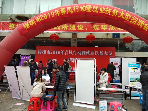 2月12日上午八点半,江西省樟树市2019年“春风行动”暨就业扶贫大型招聘会在市人力资源市场举办,本次活动的举办宗旨是“促进转移就业 助力脱贫攻坚”,来自市内及工业园区的168家企业参加招聘,提供就业岗位5200个,总计有4000余人到场咨询和应聘,求职者与用工企业达成就业意向853人,发放“春风卡”等各类宣传资料4000余份。