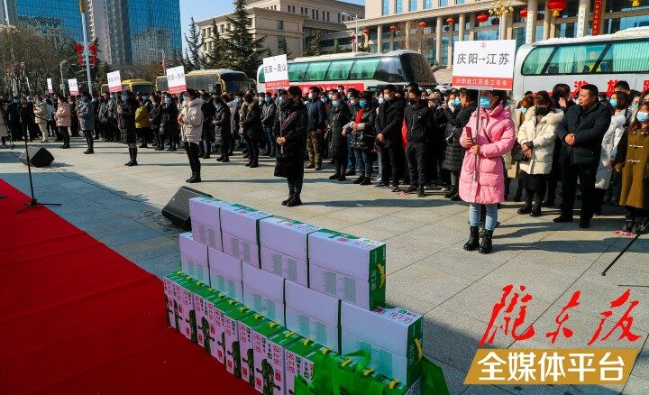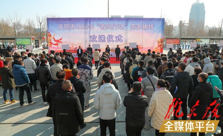 2022年2月9日,庆阳市举行“春风行动”劳务输转欢送仪式,欢送405名务工人员前往江苏、广东、河北、内蒙古等地返岗务工。副市长张鸿举出席欢送仪式并讲话。