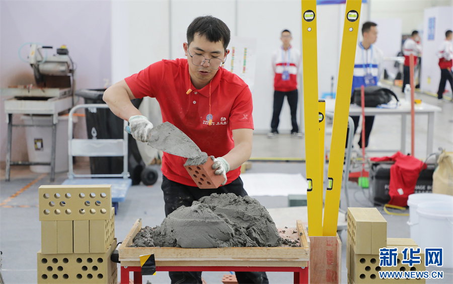 5月8日,选手在砌筑项目比赛中。新华网 卢志佳 摄