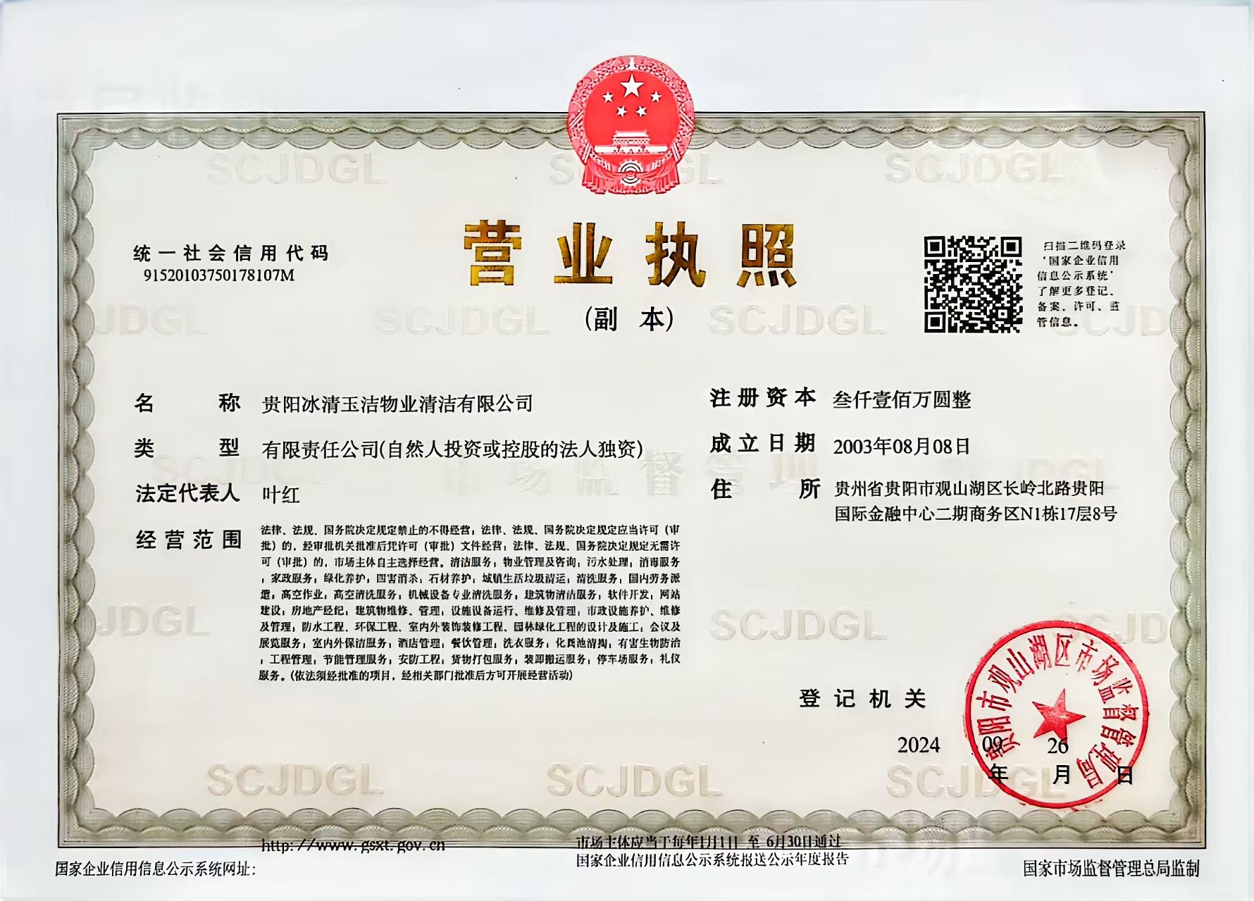 “冰清玉洁”是贵阳冰清玉洁物业清洁有限公司2023年建设的贵州省首批省级优秀劳务品牌,近两年来带动就业超5000人,通过“培训+就业”模式实现2万人次技能培训及5000人就业转化。该公司作为中国家庭服务业协会副会长单位、贵州省家政服务业会长单位及省级优秀劳务品牌主体,业务覆盖家政、清洁等20余领域,服务网络遍及12省20余城,年服务面积超2000万平方米,2024年产值破2亿元,旗下有5家子公司、8家分公司。目前,承接深圳宝安及广州白云国际机场、深圳地铁、拉萨贡嘎机场、贵阳龙洞堡机场、贵阳地铁等服务项目,形成“冰清玉洁”劳务品牌示范带动就业的健康发展格局。