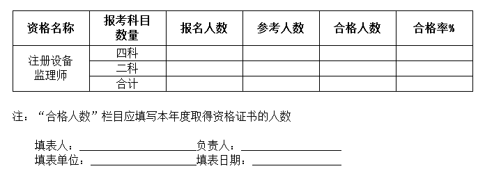 (二)请各地按注册设备监理师资格考试合格标准对参加考试人员各科目考试成绩进行复核,并与我部人事考试中心核对数据,确认无误后,按附表要求逐项填写,于12月11日前送我部专业技术人员管理司备案,备案数据作为发放资格证书的依据。