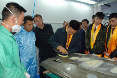 报告会后,世赛选手和专家参观了学校的民族民间工艺教学现场的唐卡、堆绣、镶丝实训室,和木雕、泥塑实训室。在现场,第44届世界技能大赛汽车喷漆项目金牌选手蒋应成还给汽车喷漆专业的学生做了现场指导,学生们听了蒋应成的讲解之后,表示非常受用。“感谢世界技能大赛冠军的到来,让我离技能梦想又近了一步!”学生激动地说。