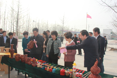 3月29日,文化和旅游部非物质文化遗产司规划处处长宋伟在山东省文化厅副厅长李国琳、临沂市文广新局局长曹首娟和郯城县委副书记、县长陈海玲的陪同下到郯城县庙山镇薛庄社区调研市级非物质文化遗产——柳编工艺品助力扶贫工作情况。