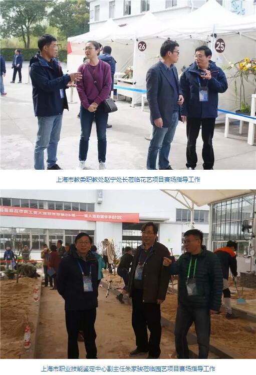 比赛期间,上海市教委职业教育处处长赵宁、上海市职业技能鉴定中心副主任朱家骏等领导分别来到赛场巡查比赛、指导工作并参观了已建成的都市园林开放实训中心。部分院校、企业代表也现场观摩了比赛。