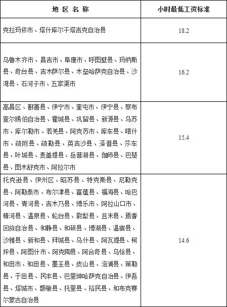三、非全日制就业劳动者小时最低工资标准依次为18.2元、16.2元、15.4元、14.6元(含用人单位应缴纳的基本养老、失业、医疗保险费及住房公积金,见附表2)。