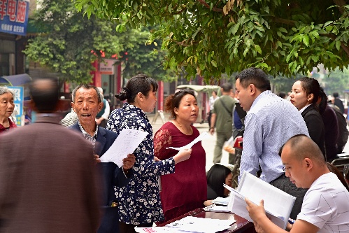 5月8日上午,在脱贫攻坚工作进入“夏季攻势”之时,一场小型现场招聘会正在洋溪镇楞山街热闹的举行。这是射洪县就业精准扶贫“送岗位、送信息下乡”的系列活动之一,射洪县就业局组织了县内外11家用工单位,为洋溪镇片区的城乡求职者带去了60余个工种、500多个就业岗位,受到贫困家庭劳动者和其他城乡求职者的欢迎,特别是一些技术和年龄要求不高、时间要求灵活的普工、家政服务等岗位尤其受到青睐,现场有父母替儿女、儿媳咨询的,也有忙时种点庄稼、农闲时想进城务工的。射洪县就业局还在招聘会现场设置了政策宣传咨询台,通过语音播放就业扶贫、就业创业政策信息,现场发放宣传资料,接受群众咨询等方式准确的将岗位和信息送到老百姓家门口。