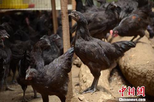 返乡创业的胡本生养殖的黑鸡 余皓 摄