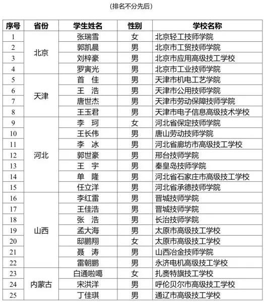 2018年度劳动出版“技能雏鹰”奖学金获奖名单