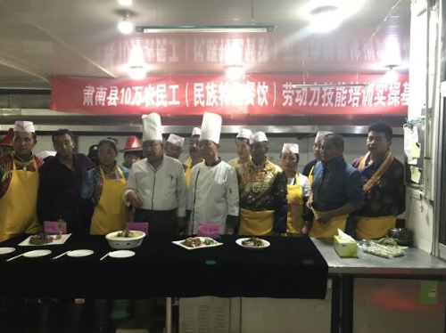为扎实做好全县十万农民工技能大培训工作,近期甘肃省肃南县人社局举办了一期民族特色餐饮技能培训班。此次培训班邀请甘肃省兰州市烹饪协会副会长、国家技能鉴定考评员亲临现场授课,培训班采取理论知识培训和技能操作相结合的方式进行,此次培训班共有55人参加,其中建档立卡贫困户3人。