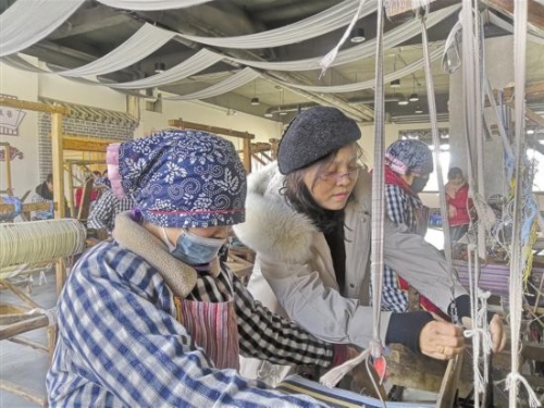 蒲城县玉女土布专业合作社理事长张玉女指导工人织布。 本报记者 吴莎莎摄