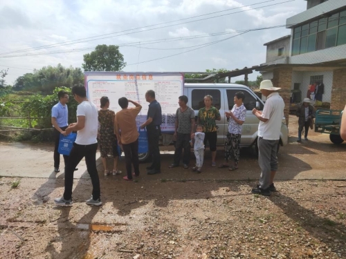8月17日,在江西省进贤县钟陵乡罗盘村,不少上岸渔民围在流动招聘车的信息栏前,询问自己感兴趣的岗位信息。