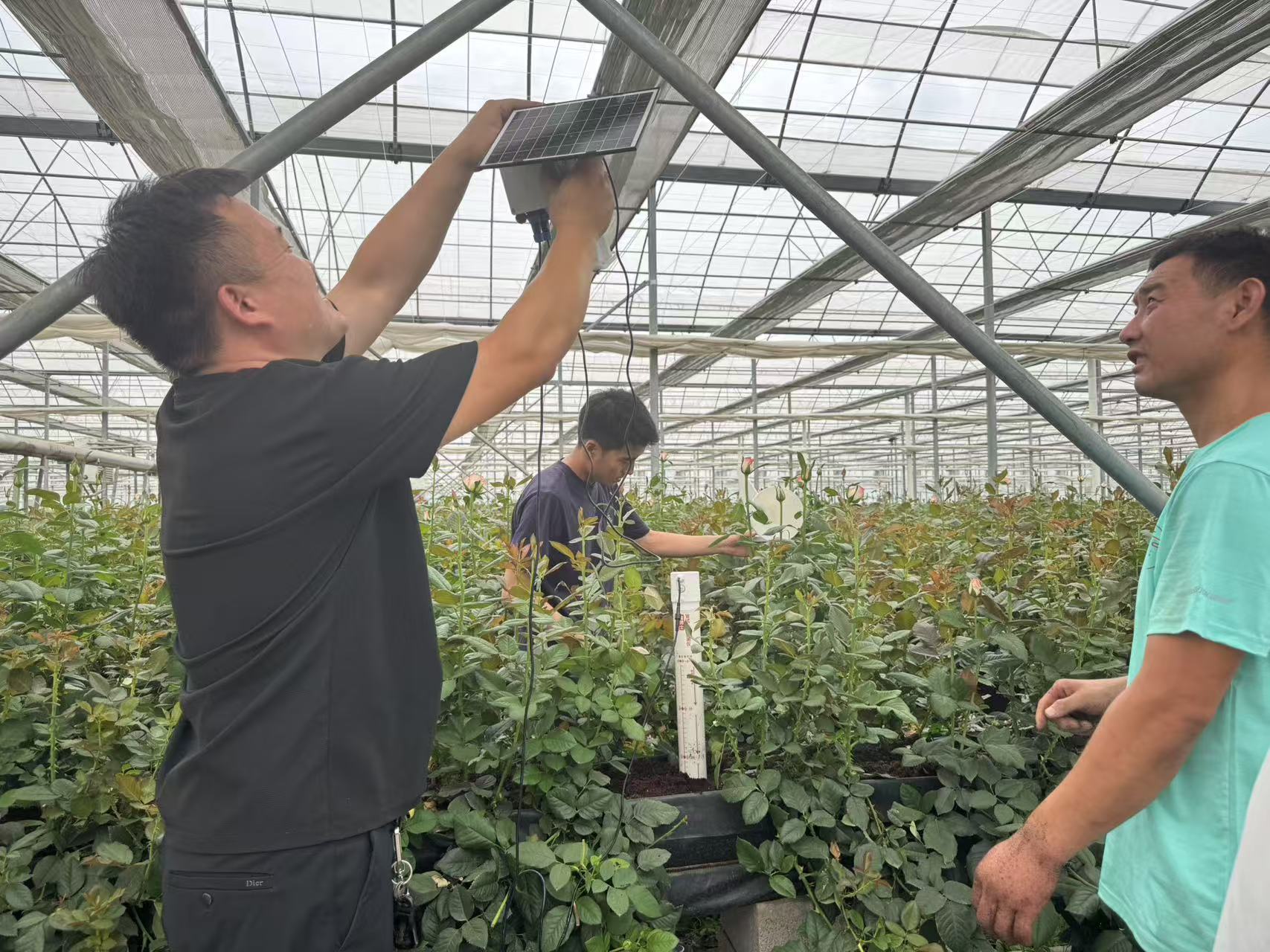 招贤玫瑰种植能手团队赴吉祥鲜花基地进行技术指导,对棚内水肥配比及土壤温湿度进行分析检测