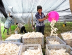 7月5日,江西万载县三兴镇湖源村大棚种植基地农民在采收竹荪。据悉,该镇引进食用竹荪大棚种植技术,采用“村支部+合作社+基地+农户”的形式发展竹荪种植,建立10余个大棚,每天有10多名农民在基地务工,月收入2000元以上。近年来,万载大力发展生态有机农业,不断优化农业产业体系,让更多农民在家门...