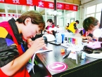 近日,山西省长治市第二届技能大赛决赛举行,1015名高技能人才在智能制造、焊接机器人等30个职业工种中激烈比拼。此次大赛获得每个职业工种第一名的选手,将被授予“太行技术状元”称号。图为选手在参加美容彩绘实操考试。(沈沁斌 摄)