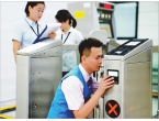 近日,第十一届全国交通运输行业职业技能大赛在广东深圳启动。大赛分为城市轨道交通服务员(站务员)、汽车维修工和流体装卸操作工3个职业(工种)的比赛。图为在深圳赛区预赛中,来自深圳地铁的参赛选手在进行自动售检票设备操作环节的比拼。(新华社记者 毛思倩 摄)