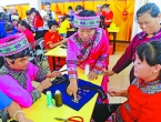 为促进妇女就业,日前,广西罗城仫佬族自治县举办仫佬刺绣培训班,150多名在仫佬家园扶贫搬迁安置区居住的妇女参加了为期20天的培训。图为培训老师(中)在指导学员学习刺绣技艺。(韦如代 摄)