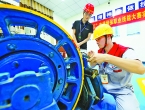 近日,安徽省阜阳市举办电梯维保职业技能大赛,来自全市14个电梯维保单位的58名选手,分别参加了电梯层门保养、曳引机制动器调整等项目的实操考试和电梯基础理论知识考试。图为参赛选手在进行电梯曳引机制动器调整项目比赛。(王彪 摄)